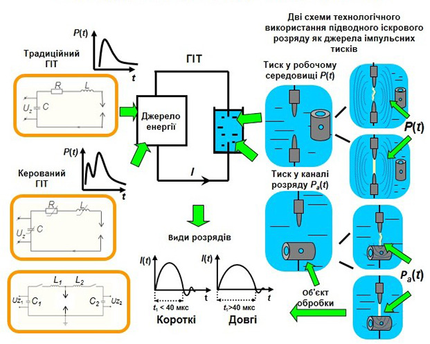 - Дослідження і математичне моделювання імпульсних процесів з метою створення ефективного методу керування цими процесами для оптимізації розрядноімпульсних технологій.