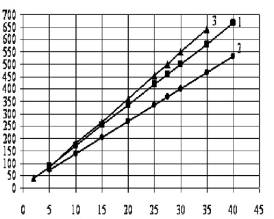 1 – ЕС с 60% Al; 2 – ЕС с 40% Al; 3 – розрахунок